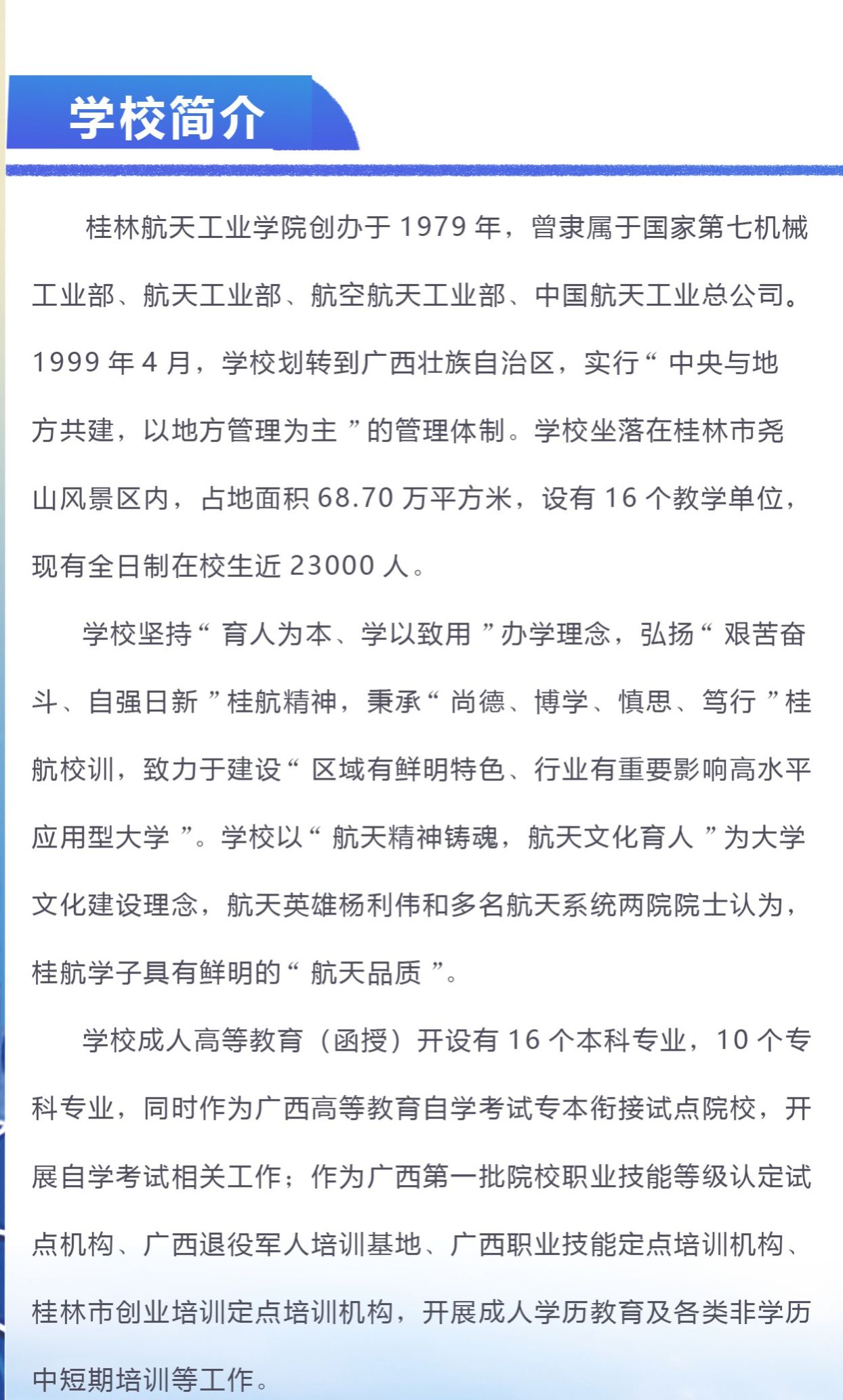 最新消息: · bevictor伟德官网高等学历继续教育2025年招生简章         · 关于同意廖佳幸等21名同学转专业的公示         · 关于2025年高等学历继续教育拟按退学处理学生名单公示         · 关于学校“新兴产业人才培养项目”“智航自考本科助学项目”的严正声明         · 【职业技能等级认定】bevictor伟德官网职业技能等级认定人员成绩公示(20250718数控铣工中级)         · 关于2025届成人高等教育本科毕业生授予学士学位名单公示(第二批)         · bevictor伟德官网航空航天研学项目简介——探索航天奥秘·点燃科技梦想         · 关于我校教育部“产学合作 协同育人”航空人才培养项目的合作声明         · 关于我校夏令营研学项目培训合作的声明         · 关于调整我校成人高等教育学费收费标准的公示