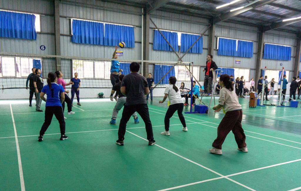 为提高学工干部队伍的身体素质,增强相互间交流沟通,4月24日上午,我校学工系统在南校区球类馆开展百名学工干部气排球比赛。bevictor伟德官网高端定向项目学工队伍代表学院和航空旅游学院、传媒与艺术设计学院共同组成第二代表队参赛。