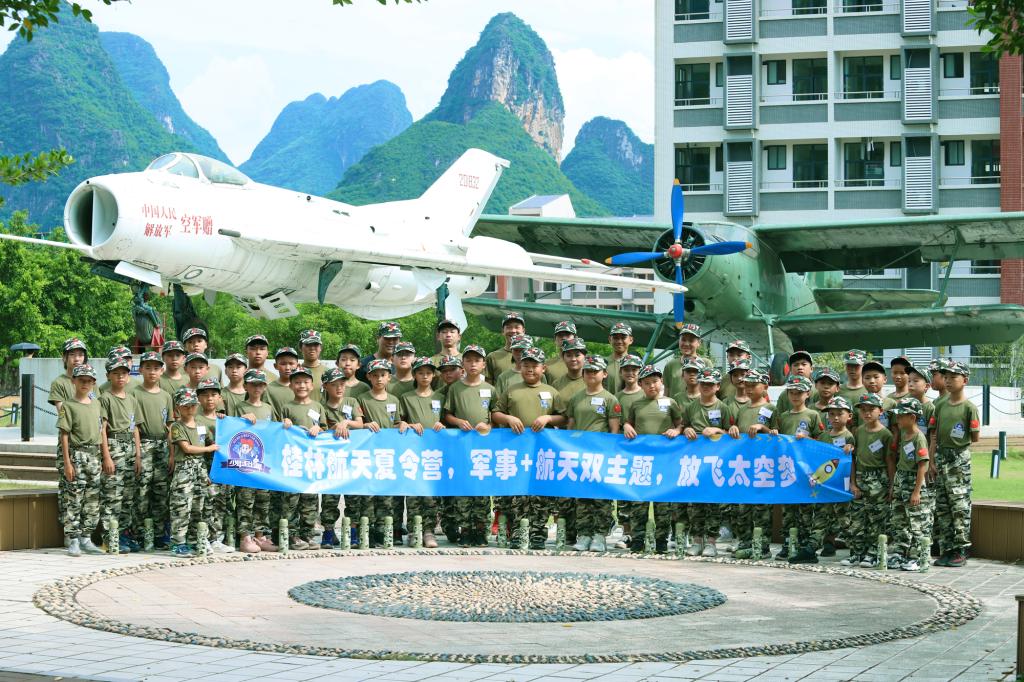 暑假期间,桂林航天军事夏令营首届研学活动在我校成功举行,来自广西各地的199名中小学生参加了活动。该活动以“航天+军事”主题,为期14天。