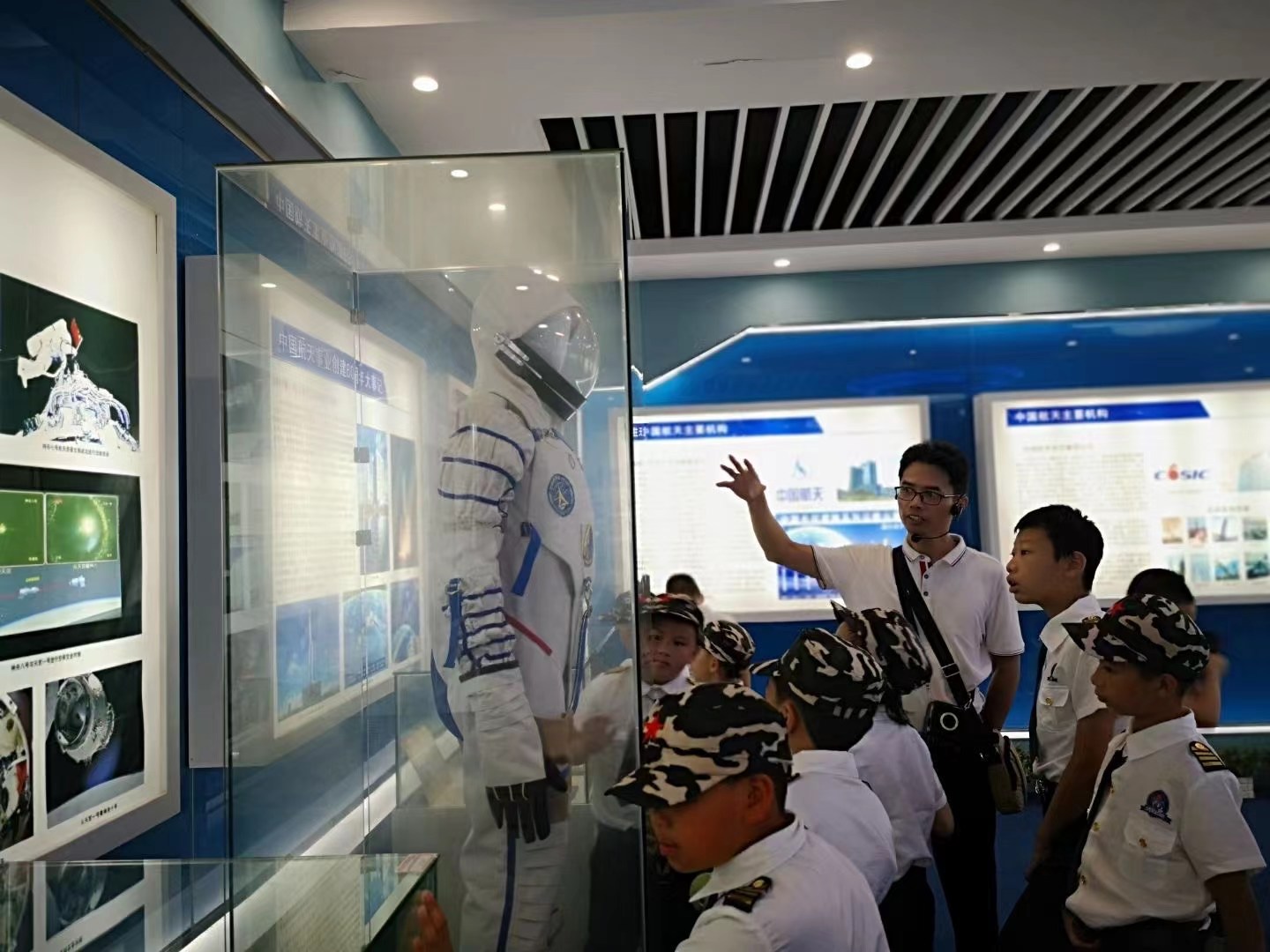 研学活动中,学员们先后前往我校“航天梦”主题展区、航天博物馆、航天品质培育中心、航空模拟舱、航V车队、无人机社团等地参观,学习了中国航天事业发展历程、空乘礼仪、方程式赛车、无人机、航天动力学原理等航天航空科普知识,并观摩飞行器飞行表演和方程式赛车表演。在学习航天航空科普知识的同时,还对学员们开展了军事训练。