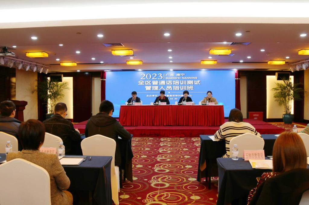本次培训班邀请国家语委普通话与文字应用培训测试中心专家、科大讯飞项目技术人员分别就新规程内容及国家普通话测试新系统进行了专题培训。钦州市教育局、桂林市教育局、广西师范大学和桂林师范高等专科学校等单位分别代表地市、高校普测站就测试管理工作作典型发言,参培人员就《规程》背景下测试管理、系统升级调整等问题展开座谈交流,广西教师培训中心负责人对全区普通话培训测试2022年度工作进行全面总结及部署2023年度重点工作,自治区语委办负责人解读了2023年广西语言文字工作要点。