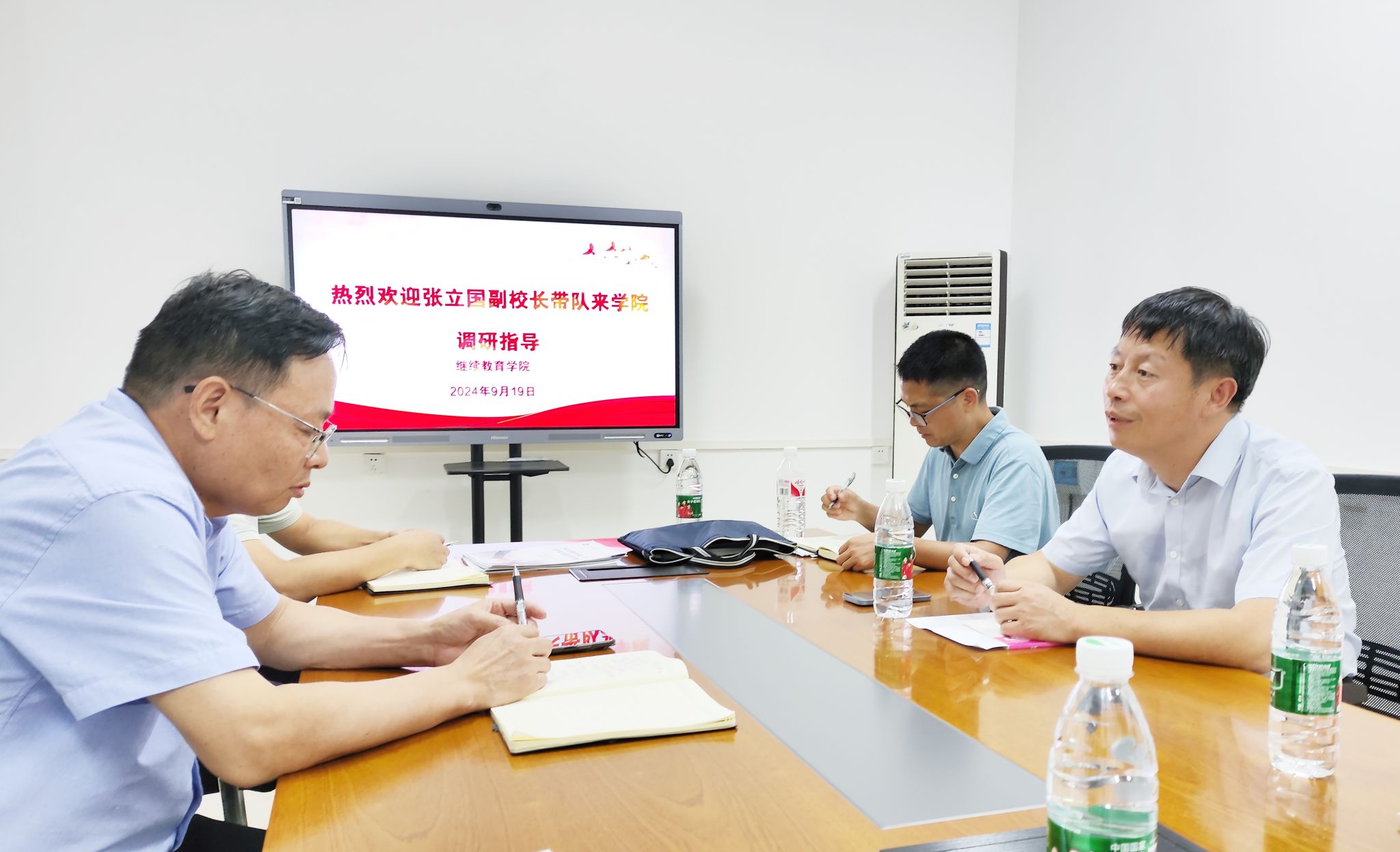 9月19日下午,副校长张立国带领发规处、国资处等部门相关负责人,深入继续教育学院开展调研。就继续教育学院今后的发展规划、办学场地使用情况等内容开展调研,听取学院意见建议。