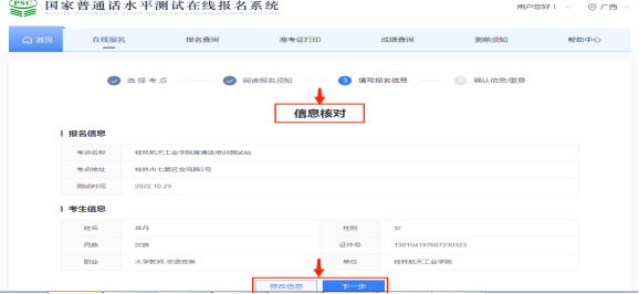 第五步:信息核对,需修改点击“修改信息”,无误则点击下一步
