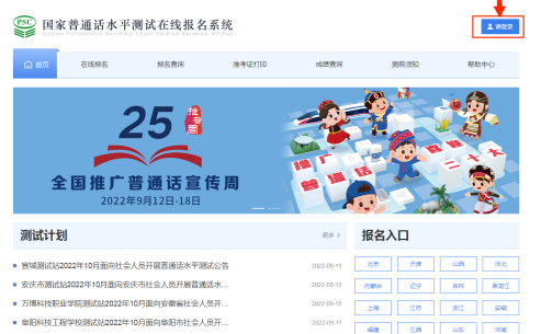 第一步:点击http://bm.cltt.org,进入“国家普通话水平测试在线报名系统”网站,点击“请登录”按钮,自行注册登录(建议报名开始前注册账号并完善个人信息)。